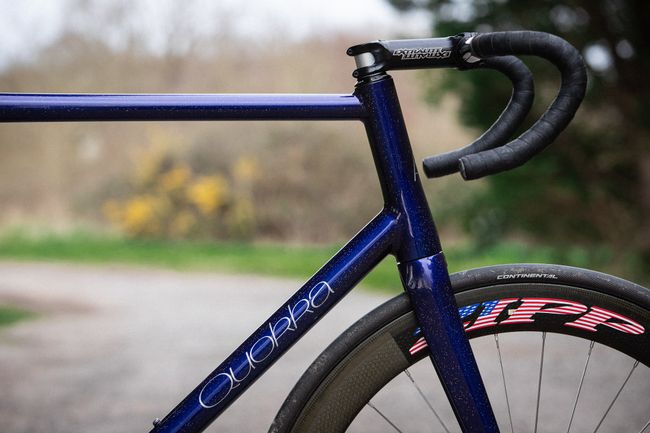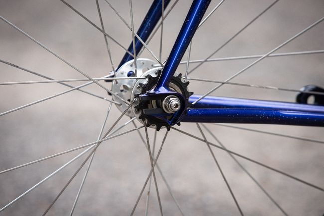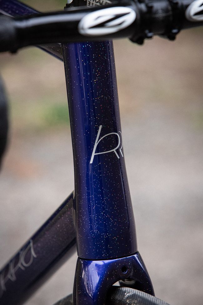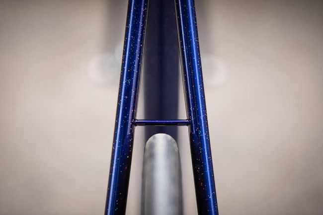 As an avid track cyclist, Ruediger got in touch with us to build the steel bike of his dreams in his (large) size…! With its sparkly trim on a candy paint job, this bike is sure to make a lot of heads turn at the velodrome.