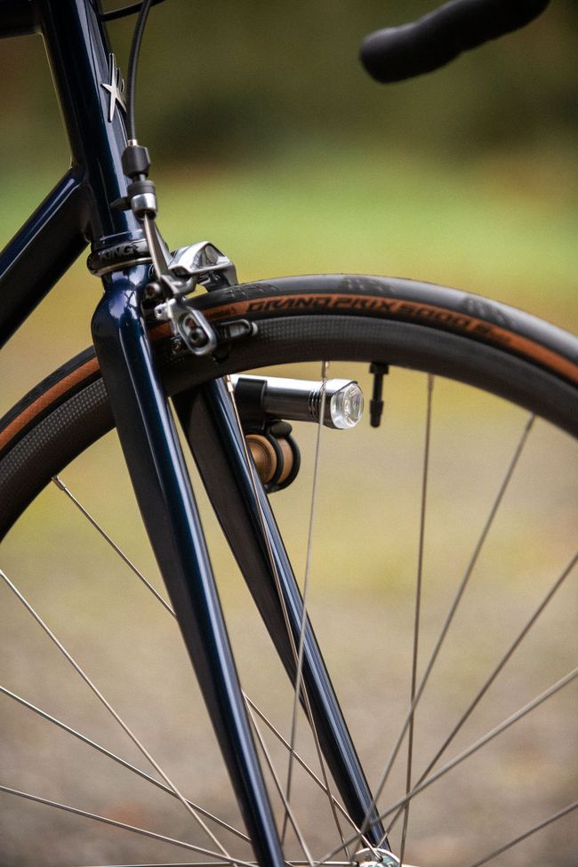 Jean-Yves contacted us in mid-2024 to talk about his future fixed gear bike. The specifications were clear, he needed a sturdy and lightweight bike that was also elegant and discreet. We therefore opted for a complete frame set including a Columbus Max steel fork, a steel/stainless steel stem and even a custom 3D-printed aluminum seat mast. To suit his long-distance riding style, Jean-Yves chose to equip his bike with brakes and three pairs of bottle-cage mounts.