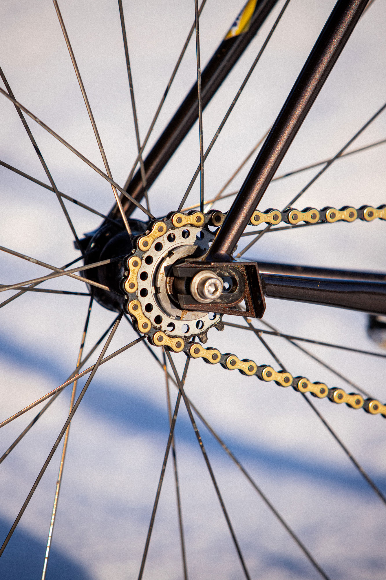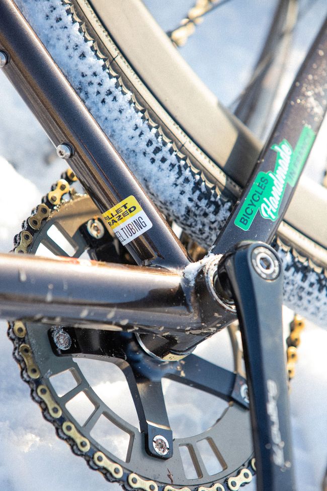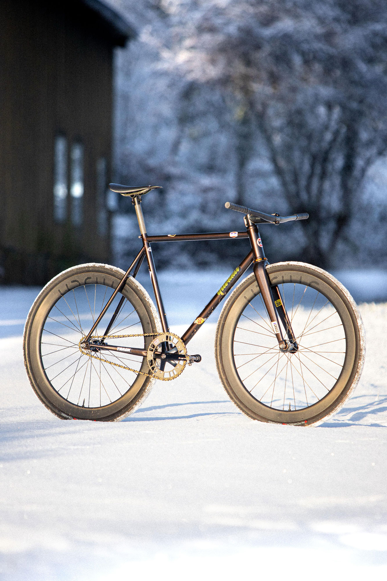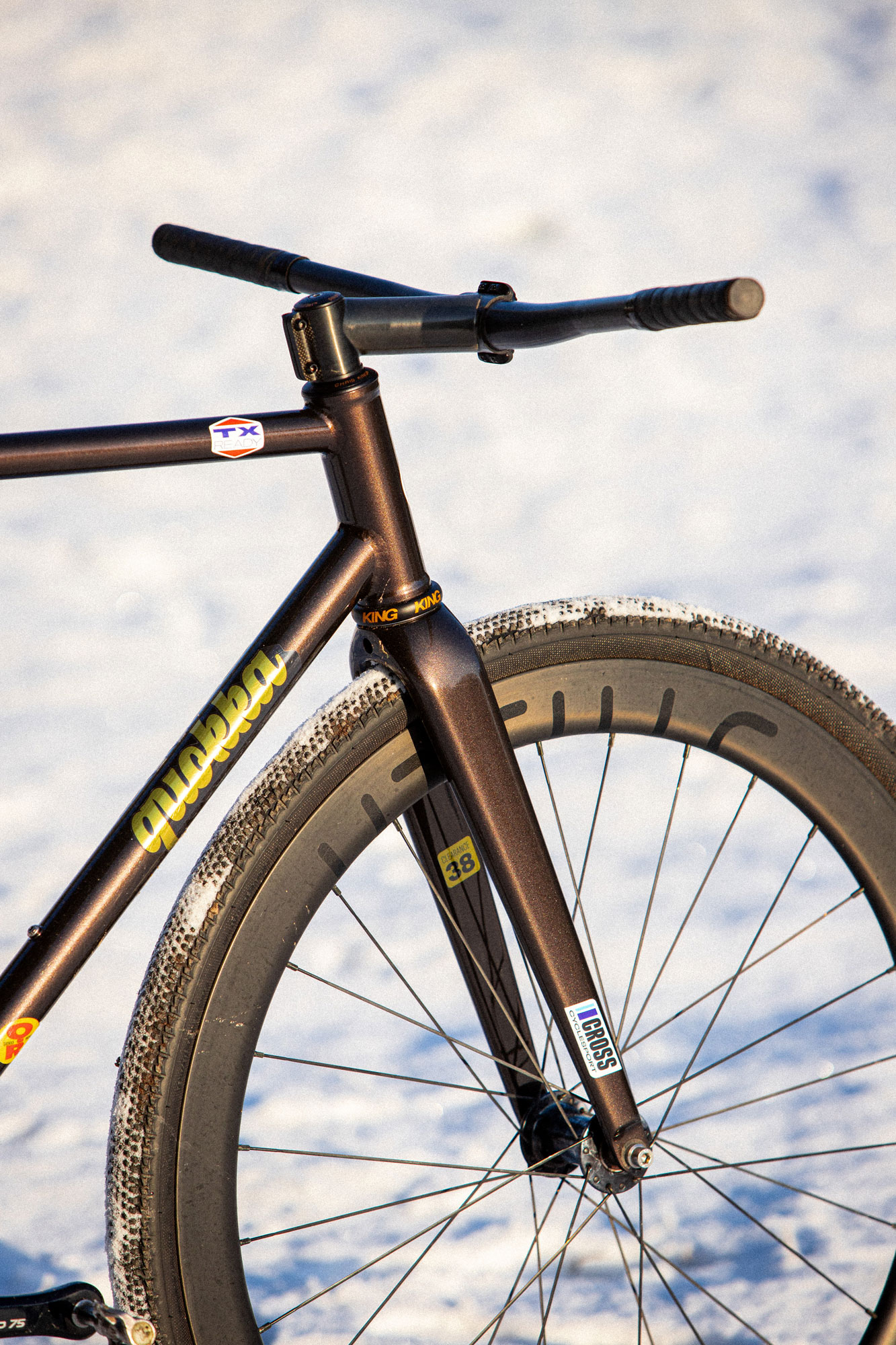 Le premier modèle CuZn est un pignon fixe, avec une géométrie agressive et qui accepte des pneus larges. Grâce à la fourche full carbone que nous avons co-développée, il accepte des pneus en 38mm à crampons en ayant de la place pour la boue.