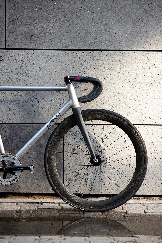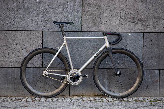 L’ultime vélo de course à pignon fixe en acier, construit en tant que prototype non peint. Pour en savoir plus, cliquez ici.