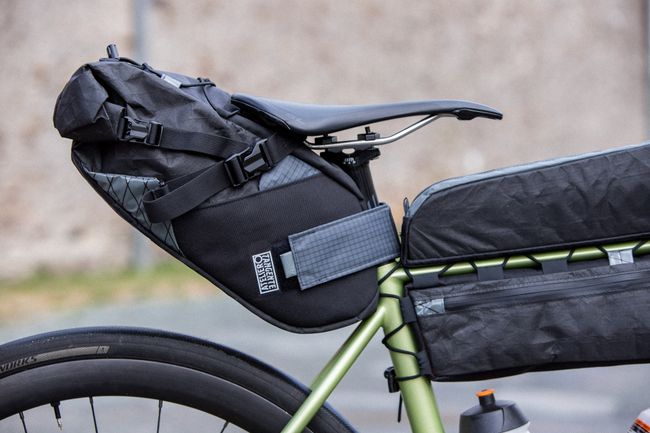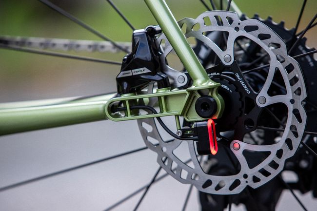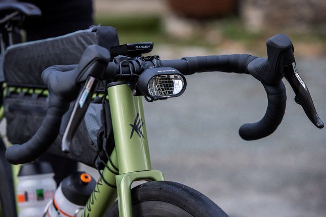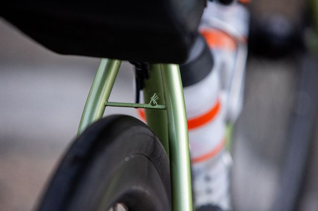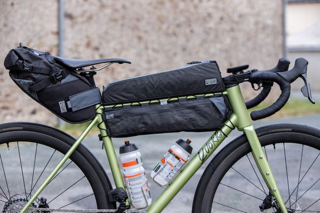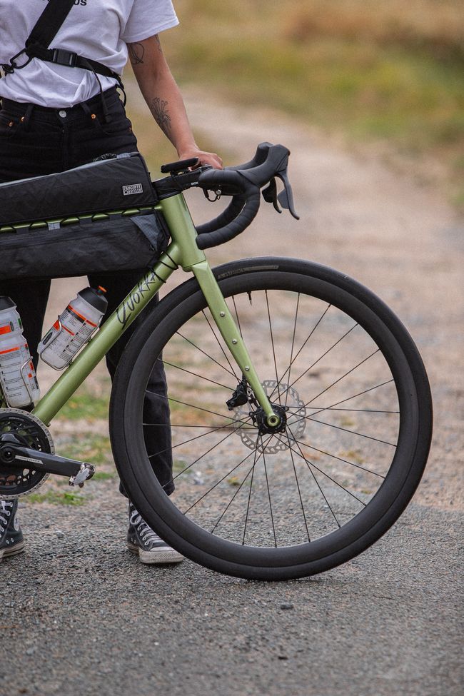 Hélène est une cycliste assidue, ferue de longue distance. Nous sommes rentrés en contact pour discuter ensemble de son nouveau vélo avec un cahier des charges qui correspondait de très près à notre nouvelle version du Falcon. C’est alors tout naturellement que nous nous sommes orientés vers ce dernier en y ajoutant une intégration pour l’éclairage dynamo et une paire d’inserts porte-bidon supplémentaire. En plus de ça, pour emporter tout le nécessaire lors de ses courses longues de plusieurs miliers de kilomètres, Clément de Tangeante Atelier nous a fait l’honneur de fabriquer un ensemble de sacoches sur-mesure pour le vélo. Ces dernières ont été imaginées autour de la géométrie sur-mesure dans le but d’obtenir un maximum de volume de rangement malgré un cadre de petite taille.